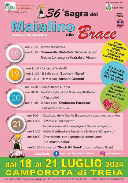 A Camporota di Treia si rinnovano le tradizioni della nostra terra, con la 36^ edizione della Sagra del Maialino alla Brace e festa di S. Vincenzo. Un appuntamento da non perdere per gli amanti della buona cucina e delle belle tradizioni del Maceratese.