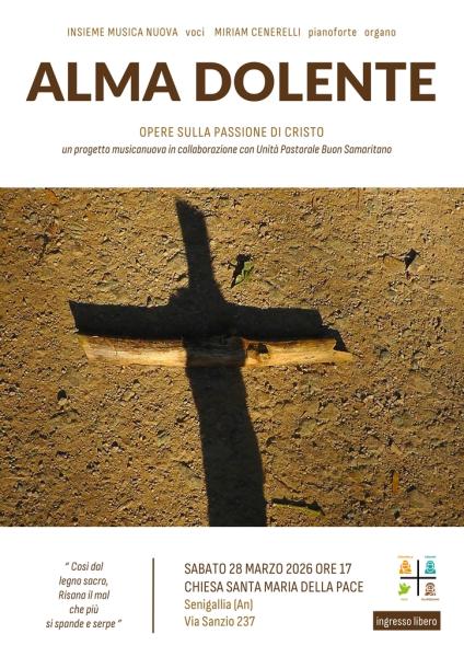 Da sabato 21 marzo 2026 si rinnova l'appuntamento della musica sacra nel tempo quaresimale con "Alma Dolente", concerti per voci e organo a cura dell'associazione Musica Nuova. Ornella Politi soprano, Marco Ferretti tenore, Carlo Giuseppetti baritono e Miriam Cenerelli pianoforte e organo proporranno un intenso percorso musicale che dalla Passione di Cristo si spinge fino all'anticipazione della gioia per la risurrezione pasquale. L'ascoltatore è guidato in una meditazione interiore dove parole e musica restituiscono la drammaticità della Passione colta attraverso gli occhi di Maria. Gli eventi, nati in collaborazione con la Pinacoteca Diocesana e grazie alla sensibilità di parroci e religiosi francescani, rientrano tra le iniziative culturali promosse per portare le suggestioni della musica nei luoghi di arte e spiritualità. I concerti, tutti ad ingresso libero, si svolgeranno a Ostra, Marotta, Senigallia e Pesaro.