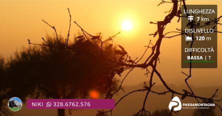 Escursione verso le ore del tramonto nelle campagne di Senigallia. Una camminata dal sapore rurale: percorreremo le strade che dal Ciarnin salgono fino alle colline della Gabriella per poi aspettare il sole scendere dietro le colline senigalliesi, tra panorami sul mare e campi coltivati. Ritorno con le prime ombre della sera
