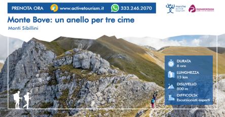 L’itinerario ad anello percorre l’intera linea di cresta tra il Monte Bicco, il Monte Bove Sud e la Croce di Monte Bove per scendere poi nella valle, dentro all’anfiteatro modellato in passato dall’ultima glaciazione.Essendo una montagna al centro della catena è possibile ammirare dalle sue cime un magnifico panorama su gran parte dei Sibillini.